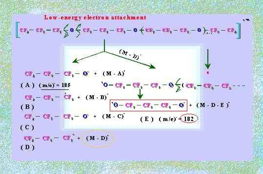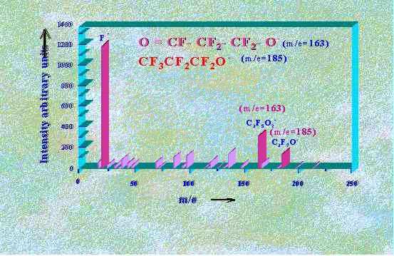 The negative ion (m/e)- = 185 is generated via C-O bonding cleavage in one end of the Demnum S200 molecule. The mechanism by which ion (m/e)- = 163 is formed was proposed by Kajdas [26]; that work aimed at accounting for this specific ion formation mechanism. According to work [26] the formation mechanism of the negative species (m/e)- = 163 proceeds as follows: