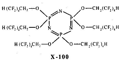 Do badań tribologicznych wykorzystano dwa oleje cyklotrifosfazenowe o takim samym pierścieniu i różnych podstawnikach: X-1 P i X-100. Ich struktury chemiczne przedstawione są na Rys. l. Oleje te zostały otrzymane z firmy Dow Chemicals i użyte do testów bez dalszego oczyszczania.