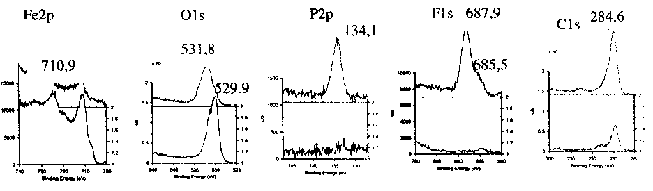 Widma XPS zdjęte z powierzchni śladu zużycia oraz z obszaru położonego poza tym śladem wykazały, że w obszarze poddanym tarciu znajduje się silnie związany z powierzchnią metalu film smarowy, którego nie można było usunąć za pomocą mycia w łaźni ultradźwiękowej w chloroformie. Zarówno do badań XPS, jak i SEM/EDS wybrano dyski stalowe po biegach testowych pod obciążeniem 200 N. Na Rys. 5 porównane są widma XPS otrzymane z dysku stalowego smarowanego olejem X-1 P. Górne widma otrzymano z obszaru śladu zużycia, dolne zaś z obszaru sąsiadującego ze śladem zużycia, który podczas biegu testowego również pokryty był substancją smarową. Widma te wskazują na to, że w obszarze śladu zużycia zaadsorbowane zostały na powierzchni metalu cząsteczki oleju i/lub produkty ich rozkładu. Sygnał żelaza Fe(2p), leżący przy energii wiązania 710,9 eV, odpowiada tlenkowi żelaza Fe203 i jest znacznie słabszy w śladzie zużycia niż poza nim. Sygnał tlenu O(1 s) poza śladem zużycia leży przy energii wiązania 529,9 eV, co odpowiada Fe2O3, natomiast w obszarze śladu zużycia sygnał ten występuje przy 531,8 eV i odpowiada połączeniom tlenu z węglem i fosforem. W obszarze skazy zużycia zarejestrowany został także silny sygnał fosforu, niewidoczny poza zużytym obszarem. Pasmo fluoru, również widoczne jedynie w widmie zdjętym ze skazy zużycia, niesie nieco więcej informacji na temat reakcji cząsteczek środka smarowego z powierzchnią metalu. Pasmo fluoru można rozdzielić na dwa główne sygnały - silniejszy, leżący przy 687,9 e V oraz boczny sygnał, o mniejszej intensywności, usytuowany przy 685,5 eV. Główny sygnał fluoru przypisać można atomom fluoru w połączeniach z węglem, np. w grupach trifiuorometylowych - CF3, występujących w strukturze chemicznej X-1 P. Boczny sygnał przy 685,5 eV odpowiada z kolei połączeniom fluoru z metalami, w tym przypadku FeF2 i FeF3. W widmie żelaza nie ma wyraźnie widocznych pasm fluorków, które powinny się znajdować w pozycjach 711,3 eV dla FeF2 i 714,2 dla FeF3, jednak główny sygnał żelaza (710,9 eV) jest wyraźnie poszerzony od strony wyższych energii wiązania i nie można wykluczyć obecności w widmie żelaza pasm fluorkowych. Występowanie sygnału 685,5 eV w widmie fluoru wskazuje na to, że w czasie tarcia olej X-1 P uległ częściowej destrukcji. Jednym z produktów tej destrukcji są fluorki żelaza utworzone na powierzchni trącej. Zaznaczyć także należy, że w przypadku oleju X-100 nie stwierdzono w widmach XPS tworzenia się fluorków metalu w obszarze śladu zużycia. Zarejestrowany sygnał fluoru odpowiadał wyłącznie połączeniom fluoru z węglem. Fakt ten wskazuje na to, że olej X-100 na powierzchni stali uległ degradacji w mniejszym stopniu niż olej X-1 P.