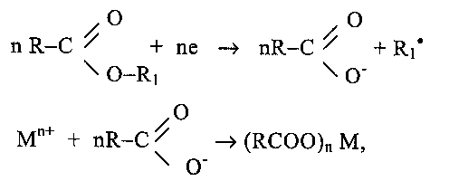 It was investigated influence of five esters on the wear of steel ball in the pin-on-disk system. Pure compounds were obtained by estrification of palmitic acid with aliphatic alcohols C8, C10, C12, C16, and C18. As a basic oil it was used n-hexadecane. Besides it was also investigated antiwear properties of equimolar mixtures of palmitic acid and suitable alcohols. All the esters as well as suitable mixtures of palmitic acid and alkohols were investigated in the shape of 300 ppm÷l,5% (m/m) solutions. Furthermore it was obtained univocal results permitted to ascertain that tribochemical reactions of esters are not caused by hydrolysis process, as the tribological literature bas been suggesting up to the present. Univocal results permit to propose a new mechanism of tribochemical reactions of esters, based on anion-radical mechanism of tribological additives action (NIRAM - Negative Ion Radical Action Mechanism).