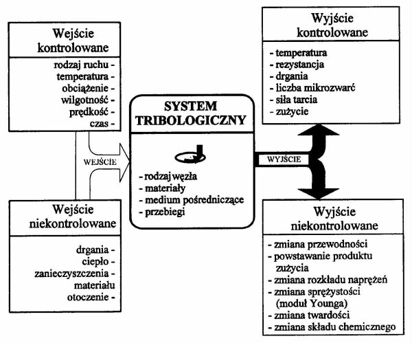 Zdaniem autora, w analizie problemu należy również uwzględnić występowanie niekontrolowanych wielkości wejściowych, do których zaliczyć należy przede wszystkim drgania i ciepło przenoszone głównie z nadsystemu (maszyny, w której pracuje węzeł tarcia) i zanieczyszczenia zewnętrzne, przedostające się do strefy styku.