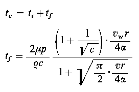 gdzie: te - temperatura w strefie styku w K, tv - średnia temperatura masy współpracujących elementów w K, tf - temperatura zgrzewania (flash temperature) w K, µ - współczynnik tarcia, p - nacisk jednostkowy w MPa, ρ - gęstość materiału w kg/m³, c - pojemność cieplna w J/K, α - współczynnik przewodzenia ciepła dla trących materiałów w N/(m•K), r - promień styku w m, vw - prędkość względna badanych skojarzeń.