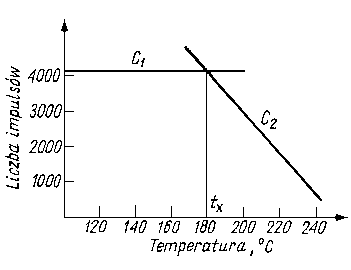 przecięcia prostych C1 i C2 wyznacza mierzoną temperaturę. Błąd wyznaczenia temperatury wynosi ± 5%.