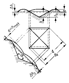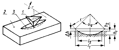 Zużycie liniowe Δh powierzchni płaskiej okres'la się z różnicy głębokości odcisków przed i po zakończeniu procesu zużycia