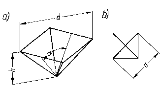 usunąć przez zastosowania szlifowania, wygładzania papierem ściernym lub innej obróbki mechanicznej. Na rys. 9.26 i 9.27 przedstawiono schematycznie odciski wykonane piramidkami Vickersa i Knoopa.