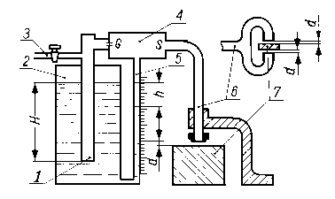 9.5.5. Pomiar zużycia za pomocą pneumatycznego pomiaru mikrometrycznegoZasada działania mikrometru pneumatycznego jest następująca: Sprężone powietrze o ciśnieniu h0, wpływa do cylindra przez otwór 7 (rys. 9.29) i wypływa przez otwór 2. W przestrzeni pomiędzy otworami l i 2 ustala się ciśnienie hc będące funkcją wielkości powierzchni otworów.