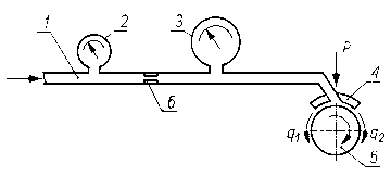 Ciecz robocza jest podawana do zbiornika, skąd przepływa między powierzchnie trących próbek. Po uzyskaniu określonego ciśnienia w zbiorniku zawór odcina dopływ cieczy roboczej i w tym czasie skojarzenie trące jest wprawione w ruch. Kryterium oceny zużycia jest spadek ciśnienia pierwotnego, panującego w zbiorniku, rejestrowanego przez samopiszący manometr w ciągu określonego czasu. Wadą tego typu rozwiązania jest zmiana ciśnienia w zbiorniku wpływająca na wartość natężenia wypływu cieczy roboczej przez szczelinę powstającą w procesie tarcia. Na rys. 9.32 przedstawiono schemat urządzenia eliminującego tę niedokładność przez obniżenie czułości pomiaru. Ciecz robocza pod stałym ciśnieniem jest dostarczana - przez przewód oraz otwór z regulowanym przekrojem między trące się powierzchnie próbek. Manometr zapisuje zmiany ciśnienia w układzie. Warunkiem koniecznym poprawnej pracy układu jest, aby natężenie przepływu cieczy roboczej Q przepływającej przez otwór było mniejsze od sumy natężeń przepływu q i cieczy wypływającej przez szczeliny powstałe między trącymi powierzchniami.