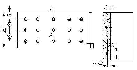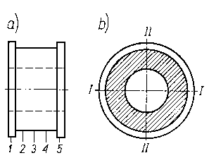 gdzie: Aw - aktywność warstwy pokrycia w mCi, λ - stała rozpadu izotopu promieniotwórczego, t - czas osadzania metalu w s, c - intensywność osadzania metalu w mm/s, S - powierzchnia próbki lub części w mm², ρ - masa właściwa (gęstość) osadzanego metalu w g/cm³, V - objętość elektrolitu w dm³, q-stężenie metalu w elektrolicie w g/cm³. 9.5.11.7. Znakowanie części za pomocą wstawek radioaktywnychMetoda znakowania elementów wstawkami radioaktywnymi wykazuje dużo zalet, jak: prosty sposób jej wykonania, możliwość znakowania pewnych wycinków powierzchni tarcia, uzyskanie dużej aktywności właściwej warstwy wierzchniej przy małej całkowitej aktywności elementu. Wstawki wykonuje się z tego samego metalu co badane elementy lub z materiału o podobnych własnościach fizykochemicznych i następnie aktywuje w reaktorze jądrowym. Kształt wstawek może być różny, jednak przeważnie są one cylindryczne o średnicy około l mm i długości od l÷1,5 mm. Na rys. 9.41 przedstawiono schemat umieszczania wstawek w powierzchniach tarcia panewek łożyska. W panewce wywiercono otwory o średnicy l mm