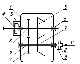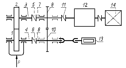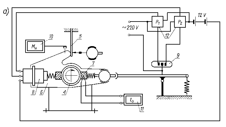 9.6.2.15. Maszyna typu SBOP do badań trybologicznychMaszyna służy do badania własności przeciwzużyciowych i przeciwzatarciowych olejów przekładniowych. Maszyna (rys. 9.72) jest zbudowana w układzie mocy krążącej. Przekładnia badawcza i przekładnia zamykająca znajdują się we wspólnej obudowie. Każda przekładnia ma oddzielną komorę i jest indywidualnie smarowana. Smarowanie przekładni odbywa się w układzie obiegowym, ciągle tym samym olejem. Przekładnia badawcza jest smarowana badanym olejem, który jest podawany z ultratermostatu 2. Temperatura oleju wypływającego z przekładni badanej 7 jest kontrolowana za pomocą termometru 3. Moment obrotowy jest wprowadzany do układu mocy krążącej przez urządzenie napinające 8 i dźwignię 6. Maszyna jest napędzana silnikiem prądu stałego o regulowanej prędkości obrotowej.