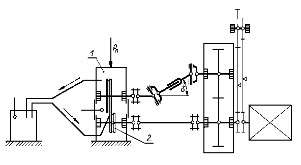Wartość tego przełożenia, a więc i chwilowego względnego poślizgu krążków można w omawianym przypadku zmieniać przez zmianę kąta δ odchylenia wałów.