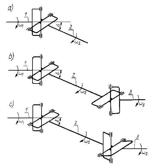 Dla sprzęgła Cardana (rys. 9.65) jest znana następująca zależność pomiędzy prędkościami kątowymi połączonych wałów