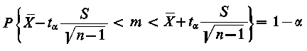 gdzie: X - średnia arytmetyczna obliczona z wyników próby, 1-α - założone z góry prawdopodobieństwo zwane poziomem (współczynnikiem) ufności, tα - wartość rozkładu t - Studenta odczytana z tablic tego rozkładu dla n - 1 stopni swobody przy spełnieniu relacji