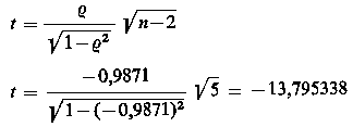 która przy założeniu prawdziwości hipotezy H0 ma rozkład t-Studenta o n-2 stopniach swobody. Odczytując z tablic rozkładu t-Studenta wartość graniczną tα dla założonego poziomu istotności α oraz n - 1 stopni swobody, należy sprawdzić czy zachodzi nierówność
