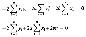 Stąd po zróżniczkowaniu uzyskamy układ równań liniowych względem a i b